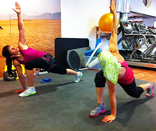 Måndagsträning med Andreas och Marie. Idag fick jag önska, och önskade röv och rörelse. Började med rörelse, som den ovan där vi gick fram i ett utfall, stannade och sträckte ut i fem sekunder, upp och byte. Så skönt!